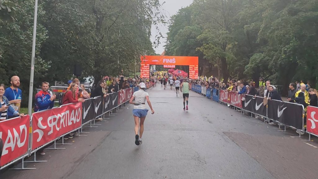 Nailazim na prvu okrepu uzimam trećinu banane, koliki su otprilike svi isečeni komadi, i malo vode. Pored toga, na okrepi se nalazi i izotonik, pomorandže, jabuke, a u drugom delu trke su se nalazili šećer i so, na dva mesta i kiseli krastavci. Maraton u Talinu imao je možda najbolju organizaciju kad je reč o osvežavanju trkača. Na svakih četiri kilometra nalazili su se stolovi sa ovom ponudom i kod svakog stola bilo je mnogo volontera. Prizor koji je na prvi pogled prisutan na svakom maratonu koji sam do sada trčao, ali nikad nije bilo ovoliko punktova sa toliko ljudi na njima.